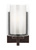 The Elmwood Park one light wall sconce in bronze provides abundant light for your bath vanity, while adding a layer of today's style to your interior design. Elmwood Park by has clear glass tube shades with an inner white glass element that softens the light and helps cast an even glow. A cylinder of etched glass is centered within a larger cylinder of clear glass which encircles each light bulb to create this stunning visual effect. The full assortment includes three-, five-and nine-light chandeliers, a four-light linear, one-light mini pendant, a three-light pendant, a two-light semi flush which is convertible into a pendant, and one-, two-, three- and four-light bath fixtures. All fixtures offered in either a Brushed Nickel or Brushed Oil Rubbed Bronze. Incandescent and ENERGY STAR-qualified LED lamping are available; all fixtures are California Title 24 compliant.