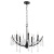 Eloise brings unexpected elegance with its bold, U-shaped design. Thick, droplet-shaped crystals hang from glass beaded strings, adding a luxurious touch. The light source filters through the various-sized arms, casting a soft, refined glow throughout the space. Available in 5-light and 6-light versions, finished in Matte Black.