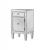 Add a touch of class to your bedroom or any room with this stunning accent chest. With beaming mirrored surfaces, it opens up the visual space in the room while imbuing it with glamour. This functional contemporary chest comes with one drawer, one door, sparkling crystal knob, and gracefully tapered legs. FEATURES: *Reflexion collection *1 drawer and 1 door *crystal knobs *Hand paintedSilver finish *Beveled mirror panel *Solid wood trim and legs *Wood drawer glides *Inside lining painted in silver. PRODUCT DETAILS: Measurement W18xD13xH29” *No assembly required *Material in solid wood and engineered wood *1 year limited warranty.
