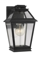 Falmouth by Chapman and Myers outdoor lighting design mimics a vintage gas lantern, with a classic, tapered box shape. The clean lines of the elegant frame have an uncluttered silhouette that showcases the beautiful panels of clear glass.