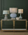 Reflecting its beautiful name, which means flower in Italian, the Fiore Console Table has lovely floral motifs flowing up each of its legs toward a metal band into which a natural white marble top is inset. Just above the graceful ball-shaped feet, another shelf sits, the natural stone a crisp contrast to the luminous polished brass finish.