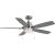 - 5 sleek reversible fan blades finished in smooth silver and grey weathered wood extend from a housing coated in a smooth brushed nickel finish