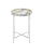 The Freya Floral Jade Marble Accent Table has bold natural markings that are so dynamic, its top reads like a modernist painting. The characteristics of the stone include waves of color and strong patterns. The tray top slides into a minimalist frame made of metal in a polished nickel finish that is a sleek element to contrast the organic nature of the stone. There will be significant variations from piece to piece given the material from which it is made.