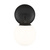 The Galassia one light wall sconce by AERIN in midnight black perfectly balances a glass globe and curving teardrop frame, giving it a contemporary look. The white glass casts a soft, welcoming glow over a space. This piece works particularly well in a hallway.