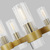 In the Geneva eight light single tier chandelier, slender fluted shades form an elegant, dynamic silhouette that's balanced by a strong frame of Burnished Brass or Polished Nickel.