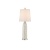 A shimmering composition, the Gerri Dot Table Lamp has a body covered in tiny circlets of mother of pearl. The bottle shape with its curving shoulders is surprisingly thin, as is the oblong shade. The slimness makes this white lamp a terrific choice for tabletops or chests where space is limited because it will sit close to the wall. Adding to the luminosity of the creation are the acrylic base and finial.
