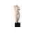 This Rubenesque figural sculpture convincingly replicates an antique statue of the Goddess Venus, though it is made of composite. It's the finish that fools the eye, the aged beige rubbed onto the surface so that it collects in the rougher spots, mimicking how the stone would have looked where it was broken off. The beige sculpture is attached to a solid black marble base and mounted to read like it's a museum piece.