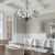 Bring nature-inspired elegance into your home with the Golden Lighting Calla 6-light Chandelier in Natural Black. Featuring a glass shade and a Natural Black finish frame, it creates a welcoming atmosphere. The hammered water glass shade boasts an irregular texture that beautifully refracts light, contributing a captivating glow to your interiors. This finish has a soft, grounded appearance that complements various styles, from modern farmhouse to industrial. Designed for dry locations, this chandelier is sloped-ceiling compatible with an adjustable height ranging from 25.75" to 99.5". Its overall dimensions are 27.75"W x 22.25"H x 27.75"D, and it requires 6 E12 Candelabra base bulbs (not included), with a maximum of 60 watts per bulb. Elevate your dining area with this chandelier's quality craftsmanship and artistic flair.