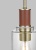 - A single bulb is suspended through a clear glass shade and accented with a saddle leather band.