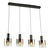 The "Henley" collection 4 light linear island chandelier features smoke type glassware, and black hardware suspended on wires.