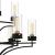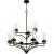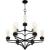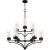 Hillside spotlights modern industrial style. Thin matte black arms are accentuated by clear glass shades and warm brass accents, adding a striking contrast to the clean lines and geometric silhouette. The Hillside chandelier is available in two sizes to ea