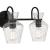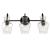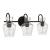 right arrow Long Description: The Hollis vanity light blends modern simplicity with artisanal charm. Its matte black finish provides a sleek, timeless backdrop, while the clear hammered glass shades shimmer like water touched by sunlight. Each curve of glass adds texture and depth, cre