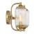 The Savoy House Holton 2-light bath light showcases an inventive and geometric style with tall, rounded shades of clear ribbed glass and a slim, rounded structure finished in Warm Brass. It will bring a big dose of style to any bathroom! Holton is 9" in height, 16" in width and extends 6.75" from the wall. It uses two candelabra size bulbs of up to 60 watts per bulb. Bulbs not included. Install as shown. This bath bar is damp area rated.