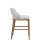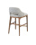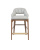 The Inga Counter Stool covered in a Greenlight Powder fabric has an upholstered back and seat that sits nimbly atop a solid oak frame in a morel brown finish. The paleness of the fabric and the warmth of the wood create a soft contrast, while the brass kick-plate brings a bit of brightness to the design.