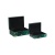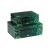 Despite looking like they are made of stone, the Interstellar Green Box Set's surfaces are the result of green swirl paper being encased in glass. The coating brings the exteriors of the decorative boxes an unparalleled sheen. The interiors are covered in black felt, and the small one will nest into the large one. Because these accessories are handmade, the patterns will vary.