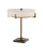 Design notes of our Jacobi Table Lamp include the thin stem rising from a black marble base that is similar in width to the finial, the sleek off-white shantung shade, and how the shade is clasped by geometric accents. This gold lamp is made of metal in a brushed brass finish.