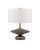 Drawing inspiration from the mid-century modern era, the Jebel Table Lamp was designed with turned stone elements that have incredible personality. The aluminum details in a brushed-brass finish contribute to the warmth of this black lamp's profile, as does the beige linen shade from under which delicate pull-chains dangle.