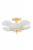 The layered botanical design of the Kamal semi-flush mount adds a pop of freshness overhead. Beautiful leaf patterns have been etched onto each piece of textured glass, creating a dynamic wave-like outward diffusion of light. The candelabra cluster positioned just beneath the ceiling canopy casts light through the layers to create a warm glow around the room. Available in two sizes and finished in Vintage Gold Leaf, Kamal makes a fresh statement in hallways, bedrooms, and beyond.