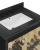 The Karlson 36” Bath Vanity has doors clad in a composition of organic patterns that look like an abstract painting applied to faux vellum. The vanity, the rest of which is painted in a Caviar black, is raised a bit in the front to bring its profile a refined detail, as does the black granite top with a rectangular undermounted sink. The interior offers practical storage solutions, including one adjustable shelf and two optional wood trays that attach to the inside of the doors for customizable organization.