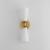 Fluted Satin White glass flares outward from an intricate and thin arm. The contrasting Natural Aged Brass and Matte Black finish adds character to the simple and stately fixtures that easily transition from modern and more traditional spaces.