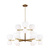Londyn is inspired by geometric playful midcentury fixtures in metal and glass with exciting profiles and scale play. Rectangle stock metal rods and a playful layout of blown glass globes in two sizes with elegant metal cuffs create visual interest. This chandelier would be great above a dining table or casual island/nook.