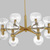 Londyn is inspired by geometric playful midcentury fixtures in metal and glass with exciting profiles and scale play. Rectangle stock metal rods and a playful layout of blown glass globes in two sizes with elegant metal cuffs create visual interest. This chandelier would be great above a dining table or casual island/nook.
