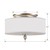 Oversized oval Lucite beaded center stem support a large dramatic shade bringing understated luxury to any room, with the Luxo collection. With the option to convert between a chandelier or ceiling mount, the versatility allows for accommodation of a variety of spaces. While sleek and streamlined, the shaded presentation offers a diffused ambiance that adds a sense of refinement and sophistication to many spaces and décor styles.