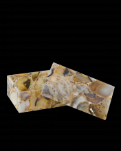 Made of black agate, the Malaga Small Box is a clean-lined design with a snug fitting top in natural stone patterning. Pair the decorative agate box with the Malaga Large Box to see how they stack so beautifully.