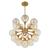 Heighten the drama of any room with the boldly beautiful Savoy House Matisse 16-light pendant. Its Sputnik style structure is studded with eye-catching dimpled shades of gold asymmetric plated glass and finished in Warm Brass to create a spectacular look. Matisse is 22" in width and has an adjustable height ranging from 19.5" to 73.5". Uses sixteen G9 bulbs, which are not included. Comes with four 12" downrods and one 6" downrod.