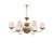 The design of the Mirasole Gold Chandelier was inspired by nostalgia, recalling the décor of ice cream parlors that were once staples in America. The milky glass globes are supported on shapely stems in a contemporary gold leaf finish and ornamented with fluted leaf patterns in a darker gold finish to add interest. The globes on the fixture glow brightly when the lights are switched on, the illumination bringing the rich brass finish a high sheen. Adjustable from 25.5" to 93.5" with use of included chain/rod kit/cable. If your space calls for a longer drop, additional chain/rods/cable is available for purchase.