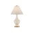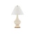 The Musetta Table Lamp is an example of tailored perfection. Panels of faux leather have been expertly sewn and wrapped around the hexagonal shape that makes the lamp's body so appealing. The ivory lamp is cinched by a metal ring as it nears the base, which matches the antique brass finish on the base itself. The box-pleated shade that echoes the scale of the lamp is fastened with a finial that is also in antique brass.