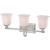 This gleaming collection gives a solid nod to mid century style. The squared shape of the opal etched glass shades gives this design an edge and it is complemented beautifully by the rectangular backplate.