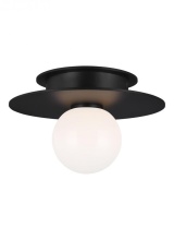 Nodes task, ceiling and wall lighting is minimal yet bold, highlighting Kelly's distinctive juxtaposition of mixed-materiality and curvilinear form. Light radiates from milk glass globes set against metal discs. All fixtures can be used or without the discs. The cast canopy is available in Burnished Brass or Midnight Black. Hanging fixtures within this family feature black fabric cords, while pivot sconces can be cord and plug or hard wire.