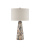 The Oldwalls Table Lamp is made of concrete onto which a painterly pattern has been applied in a mix of matte black, charcoal gray, and brown, the composition then antiqued to look aged. The arrangement of the varied shapes in different colors is reminiscent of the cubist movement, and the textural feel of the antiquing gives the lamp a vintage feel.