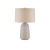 The Owen Table Lamp is made of ceramic with a tone-on-tone toothy pattern that is glazed in off-white and pale brown that creates a textural effect. Also contributing is the shade that has different patterns woven into it. The antique brass hardware and finial add to the warmth of this piece.