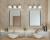 Three-light bath with distinctive forms that highlight soft modern accents. Etched white glass shades balance nicely with the fixture's full back plate and simple square arms, contributing to a desired spa-like effect. Brushed Nickel finish.