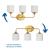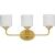 With a youthful, yet timeless flair, the Lynzie Collection brightens your day with its elegant form. Three etched white, oval shaped glass shades are held upright by delicate arms attached to a classic oval backplate coated in a brushed gold finish. Uncluttered and simple lines depict the gracefulness of this bath vanity collection and add visual interest without complexity. Ideal for a bathroom, hallway, or foyer in modern or transitional style settings, this versatile design can be mounted with the glass facing up or down for more design flexibility.
