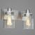 Ideal for a bathroom and powder room.;Perfect for farmhouse and urban industrial style settings;Beautiful brushed nickel finish;Crisp clear glass shades;Mount the light fixture facing up or down;Use 2 medium base bulbs that are sold separately (100 W max -