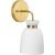 The Lexie One-Light Vanity Light is full of spunk with a fresh new style for todays home. A slender minimalist frame finished in Brushed Gold supports opal glass shades with a distinctive cinched metallic collar.The versatile fixture can be mounted facing up or down, offering the perfect amount of illumination to the room.