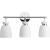 The Lexie Three-Light Vanity Light is full of spunk with a fresh new style for todays home. A slender minimalist frame finished in Polished Chrome supports opal glass shades with a distinctive cinched metallic collar.The versatile fixture can be mounted facing up or down, offering the perfect amount of illumination to the room.