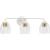 The Quillan Three-Light Vanity Light offers a graceful flourish to add distinctive designer touch. Scalloped elements create a richness of detail to complement the clarity of clear, elliptical glass shades. Each fixture includes both matching and contrasting accent rings. This versatile light can be mounted up or down to provide clear illumination to the room.