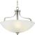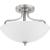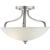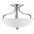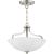 The three-light semi-flush fixture that also can convert to a hanging fixture from the Laird collection provides a contemporary complement to casual interiors popular in today's homes. Glass shade with scrolling arms add distinction and provide pleasing illumination to any room, creating an airy effect. Brushed Nickel finish.
