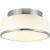 Graceful curves and bold angles combine to create a softly structured look in Parkhurst. An airy frame coated in soft brushed nickel defines the form and delivers unobstructed layers of light though etched glass shades. The visual appeal of the flush mount will offer a subtle and elegant silhouette over home theaters, bathrooms, or bedrooms in new traditional and contemporary interiors.