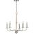 This versatile chandelier from the Durrell Collection will easily find a home in a variety of settings in need of generous illumination. Light bases reminiscent of vintage candlesticks are coated in a beautiful brushed nickel finish and appear to float around the structure on gently curving metal arms. A wooden column coated in a cerused white finish stretches elegantly at the light fixture’s center to attach the design to a linked metal chain.