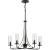 Incorporate a sleek simplicity and natural beauty with the Riley Collection's Five-Light Black Chandelier. Clear glass shades are ready to offer stunning, rejuvenating illumination. The shades rest on a gorgeous black frame with brushed nickel accents that manifests feelings of tranquility and serenity.