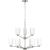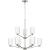 Fundamentally modern but with a traditional twist, the Adley double-tiered chandelier combines etched white glass shades with a curved arms and simple, straight bars finished in brushed nickel. This light is an elegant choice for illuminating dining rooms, halls and home theaters or great rooms in transitional settings and contemporary settings. The fixture has 60 in. of chain to customize it for a variety of ceiling heights and can be used on a sloped ceiling.