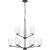 Fundamentally modern but with a traditional twist, the Adley double-tiered chandelier combines etched white glass shades with a curved arms and simple, straight bars finished in matte black. This light is an elegant choice for illuminating dining rooms, halls and home theaters or great rooms in transitional settings and contemporary settings. The fixture has 60 in. of chain to customize it for a variety of ceiling heights and can be used on a sloped ceiling.