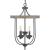 The four-light foyer in the Gulliver Collection features arching and delicate details that curve to create an airy design. Dual toned frame color combinations in a Graphite finish with weathered oak accents The hand painted wood grained texture complements Rustic and Modern Farmhouse home decor, as well as Urban Industrial and Coastal interior settings.