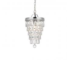 - Tiers of royal-cut clear crystals reflect the soft glow of one light