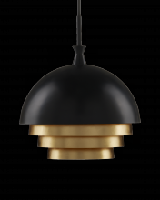 The cascading forms that make up the shade of the Salviati Large Black & Gold Pendant are fashioned from steel in a contrasting mix of deep black and luminous gold leaf finishes. Telescoping rings are inserted into the larger dome in a way that allows the illumination to reflect on each of the gold surfaces for an enhanced glow. The simplicity of the stem and hardware from which it hangs heightens the contemporary feel of this black pendant. Adjustable from 22.25" to 64.25" with use of included chain/rod kit/cable. If your space calls for a longer drop, additional chain/rods/cable is available for purchase.